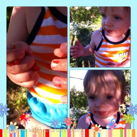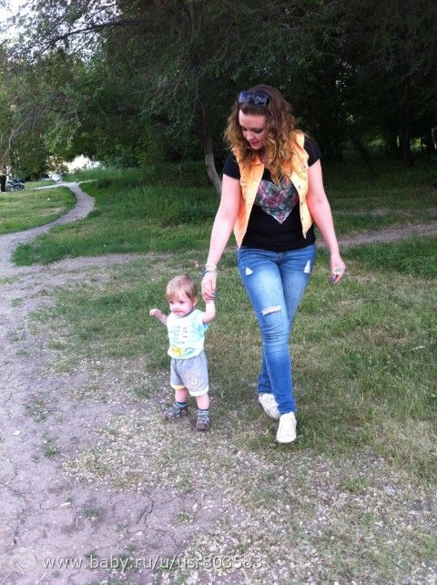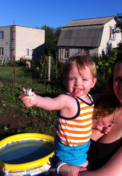 Ну вот и мы вышли на финишную прямую к годовасию… 15-го числа нам исполнилось 11 месяцев. В голове кавардак, мысли в порядок привести ну никак не получается!)) С чего начать подготовку, как накрывать стол, как украшать квартиру, какой заказывать торт… Мрак короче. У Дениса лезут 7-й и 8-й зуб, ночи не спим, днями ноем, в общем-то все как обычно)) А еще сынулька сделал на свои 11 месяцев мне подарочек! Первый раз прошел больше двух шагов)) Прошагал метра два примерно! Ураааа!!!))) Совсем теперь взрослый мальчишка мой!..)) Правда все равно еще побаивается и меня за руку все время норовит поймать. Ездили на дачу, купили наконец сыну бассейн и открыли купальный сезон! А я наконец вдоволь наплавалась в Волге! Все прошлое лето об этом мечтала))) Наотдыхались, наплавались, наелись клубники!.. Ммм… О чем еще можно мечтать?!)) Ну и фотоотчет: