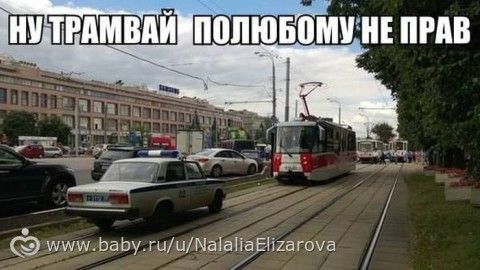А что такое у машины привязано? И подпись моя мечта ещеОоо, а «Трамвай по любому неправ» — у метро Нагатинская снято)