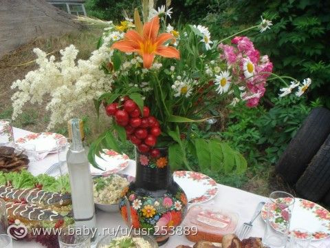 Привет всем-всем!!! Наконец -то добралась к компьютеру чтобы скинуть Вам фоточки и немного написать о Маюшкином празднике!!! Устала я оооочень))) Отмечали днюху на даче, слава Богу что у моей мамули рядом дом и она мне все-все помогала + крестная моего брата и тетя. Всего гостей было 35 человек)))) Блюд было очень много, мы старались. Из развлечений было тоже много чего) Был у нас ведущий ( тамада) с огромными колонками микрофонами и светомузыкой))) Вообщем круче чем у нас на свадьбе))) Конкурсы, тосты, пляски было всё))) Всё снималось на видео, очень большое сюда закинуть не могу((( Ещё была красивая фотосессия ( фоток пока нет, потом похвастаюсь). Ну и немного фото)