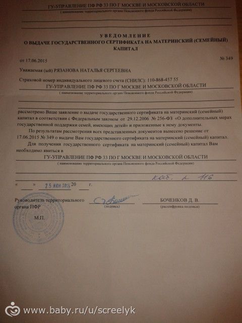Последний абзац указано «Для получения сертификата явиться в ГУ УПФР далее идет пустая строка ручкой написан № кабинета» далее идет дата и подпись руководителя. Я как человек, проработавший почти 10 лет с различными документами имею некое представление о ведении делопроизводства. Так вот в любом документе, будь то письме, обращении, заявлении, жалобе в конце пишется дата и подпись заявителя. Смотря на это письмо при его получении я не смотрела на дату в конце письма, так как подумала, что это дата, когда письмо было подписано (а точнее у меня даже мыслей не было, что эта дата имеет важную роль в данном письме). Люди которым дата письма не принципиальна на нее как правило не обращают внимания. Так вот ЭТА дата и есть та дата, когда мне необходимо было явиться в ГУ УПФР за получением заветного сертификата. То есть потратила свое время зря, да впрочем не удивительно, когда идешь в ЛЮБОЕ госучреждение есть такая примета туда возвращаться не один раз. Ну да ладно.