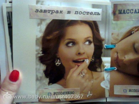 Я делала своими руками «Сертификат » и там прописывала желания и сколько поцелуев они стоят, также указала до какого числа он действителен. Любимому очень понравилось, что праздник длился не один день, а желания исполнялись несколько дней.