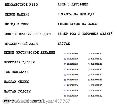 нет) с желаниями)посмотри в нете там даже шаблоны есть)вот это то что делала я)))ну пара страниц для примера)))