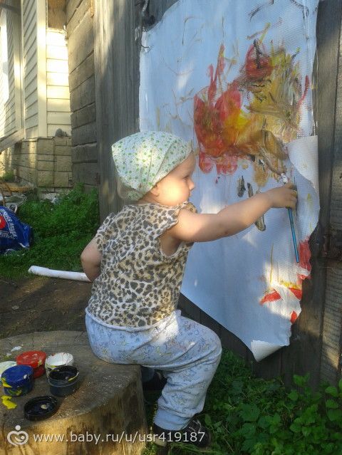 Рисует!)) Это нечто)) Когда начала рисовать рьяно, думала перерастёт, нет! Рисует всегда и везде)) Убрала уже все фломастеры и маркеры)) Везде лежат карандаши и листочки, постоянно рисует! Да ещё и пальчиковые краски мы наконец-то приобрели)) На улице рисуем периодически, так классно, Сплошной восторг!!!
