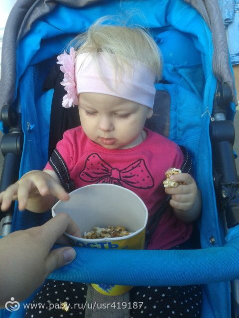 Гуляли на площади, купила Тёмику попкорн, Аня съела пол стакана)) Очень понравился)