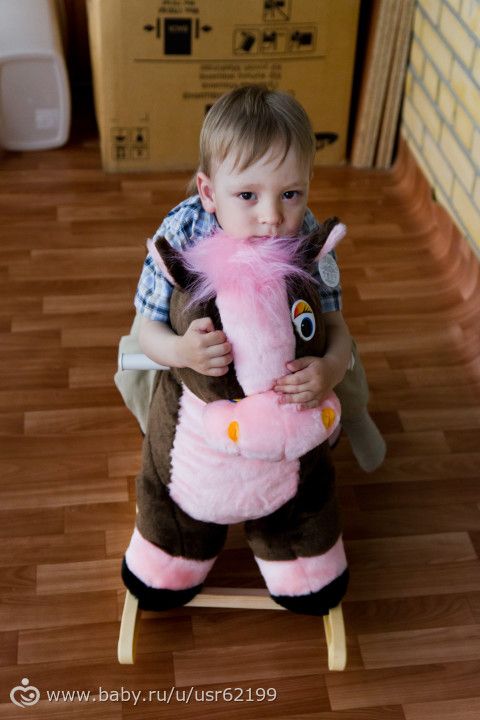 наш друг Михаил) первый опробовал наш подарок, Лошадку-качалку)