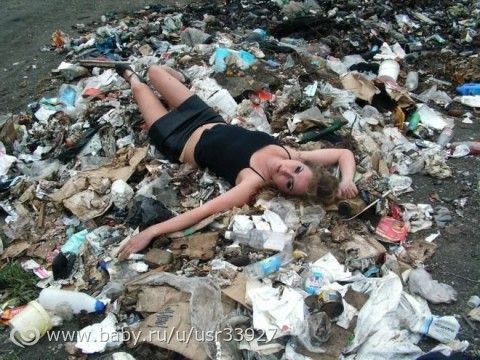 фото на мусорке. подобную фотосессию видела в «топ-модель по-американски»