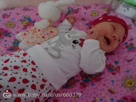 вот уже почти 40 дней нашему крохе!!! 25 июня, в 1 месяц, ходили к врачу. Вес 3788, рост 55. Держит головку в «столбике» и когда моем попу в раковине)Иногда переворачивается с бока на спину.Крутит лежа на спине головой, смотрит за погремушками, разглядывает игрушки и лица. Мяукает как котенок во сне)) иногда тянет букву «у». Улыбается во сне и пару раз смотря на меня улыбнулся(вероятнее всего пока не осознанно)