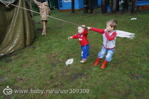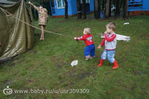 Поспал младший в домике, пока была эстафета. А потом начался ливень в день молодежи (такие лужи, что из домика не выйти) и решили поставить военную 12 м. палатку