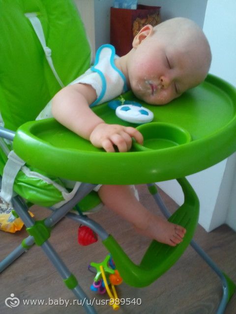 Как приехали домой, дочка уснула в стульчике… пока я набирала очередную ложечку творога...)