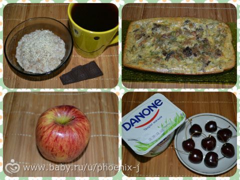 Обед: рыбный пирог (по вкусу больше похоже на что-то среднее между омлетом с начинкой и рыбной запеканкой, но мне понравилось)))) делала так: для теста смешала 100 гр творога 5%, 3 яйца, 2 ст.л. ржаных отрубей, 1 ст.л. кукурузной муки, 100 мл молока, треть теста вылила в форму и поставила в духовку на 180 гр на 7 минут, достала, выложила сверху начинку (у меня был консервированный тунец и зел.лук), залила оставшимся тестом, посыпала свежим укропом и назад в духовку еще на 35 минут.