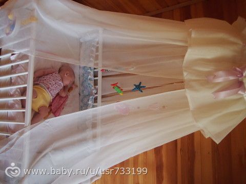 Вот такой балдахинчик у нас получился.Доче, вроде, нравится лежать в кроватке, как принцесса)))Шьется очень просто. Кому интересно мк здесь http://golova-idea.ru/hobbi/shite/baldaxin-na-detskuyu-krovatku-svoimi-rukami/.html