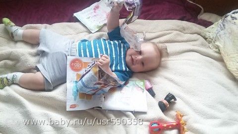 Как же быстро летит время… Сыночку уже 8 месяцев, совсем большой!!! Вес наш 8650 и рост 69 см) Кушаем хорошо и овощи и каши и фруктики, в конце недели будем вводить мяско!!! Муж ждет этого момента, больше, чем ребенок!!!) А то говорит, что я сына одними овощами кормлю, пора ему мужскую еду пробовать))) Зубы у нас так и не вылезли, верх и низ опухшие, слюни рекой, кусает и грызет все, что попадет к нему, в том числе и меня) Чувствую, когда зубы вылезут, буду покусанная ходить… Ползаем все так же по-пластунски только, но уже встаем на четвереньки!!! Сам еще не садиться, но если посадить, спинку держит уеренно. Были у всех специалистов, сказали, что он ленивый у нас просто и скоро будет все делать, а то я уже переживала немного… Четко говорит «мама», «папа», «дай». И вообще поболтать мы любим!!!) Ненадолго ставлю в ходунки по 5-10 минут в день, он в восторге!!!)
