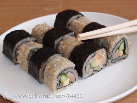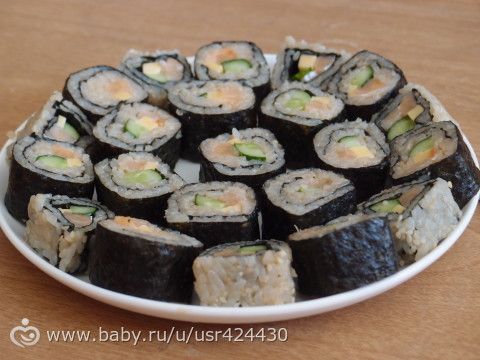Попробовав однажды, поняла, что это МОЯ еда!!! Моя она еще и потому, что кроме меня дома любителей суши не нашлось)) Вдоволь наевшись этих японских завертушек я решила завернуть сама))))