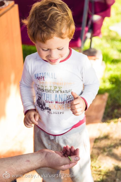 в прошлом году Даня еще побаивался всяких кузнечиков и тд, в этом году уже принес домой лягушонка, запустил его под холодильник, поймал кузнечика, мотыльков ловит, червяков роет, теперь вот гусенничку нашел :) сначала не знал можно ее трогать или нет, принес папе на листике, а потом уж осмелился