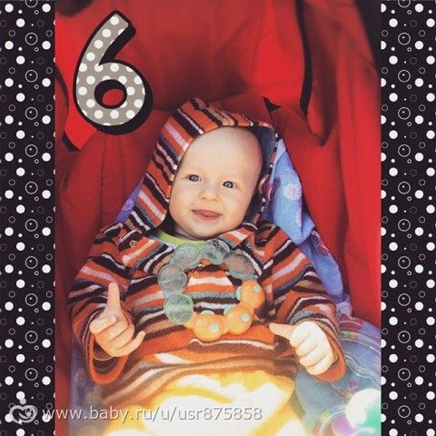 сегодня нам не много не мало а уже 6 месяцев) кушаем мы уже кабачок, броколли, рисовую кашку, яблочко и сисюзубками не блещем) еще не одного нету) по тихоньку начинаем ползать, мы скромняги не особо любим болтать прилюдно, кричим только маме на ушко но всем дарим свою беззубую улыбочку вес и рост к сожалению незнаю так как мы на отдыхе)) спим мы так же хорошо с 22:30-6:00 без просыпания, кушаем и дальше спать до 10. Днем спим около 3-ех раз. Вот и все наши новости. P.S. Ужасно скучаем по нашему папочкедавай быстрее работу работай и к нам поздравлять нашего ангела #babyru
