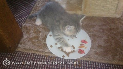 Доктор обиделся, кот есть пошел. Такой же жадный растет, как и хозяйка… Часть ест, часть лапой держит))))))))