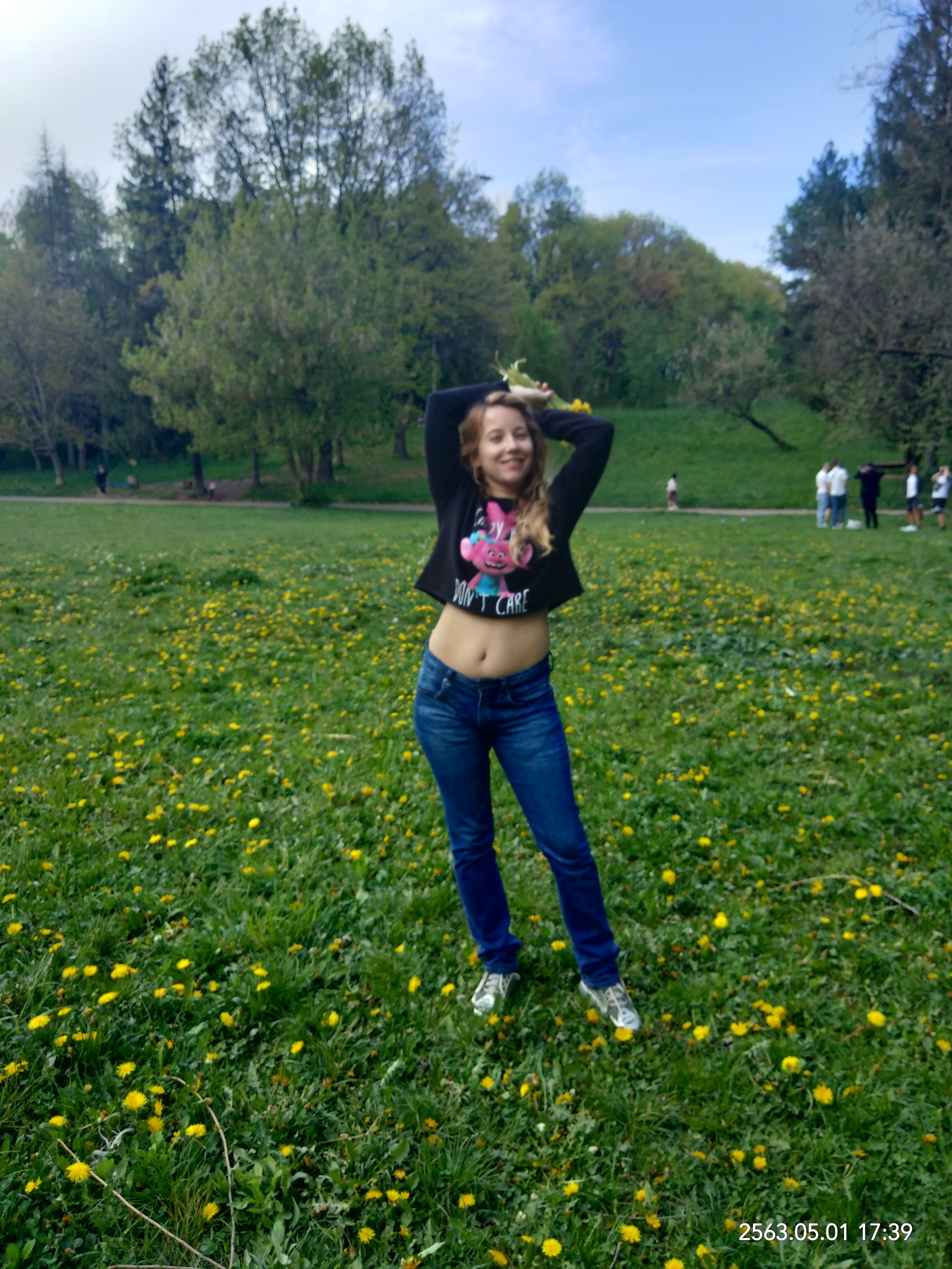 Убежала, дальше поет. Я леплю себе. Приходит.