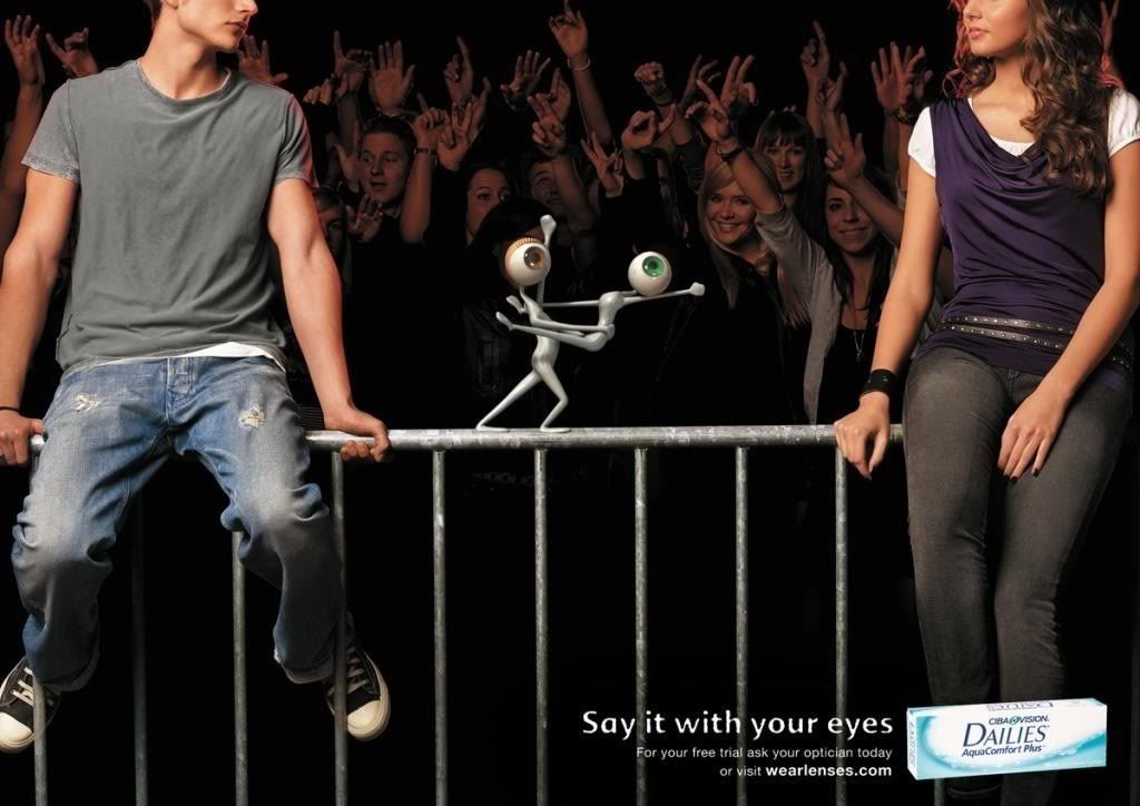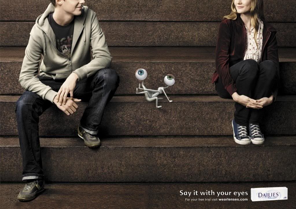Реклама линз: «Скажи это глазами».