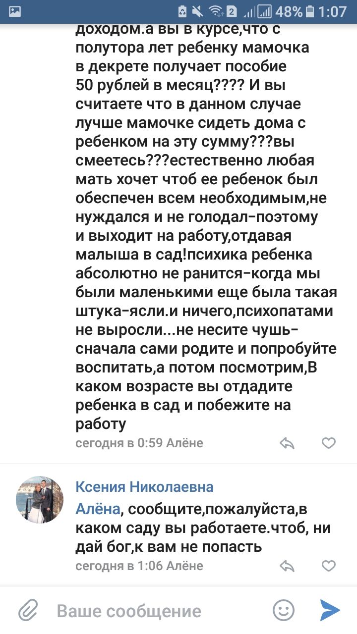 Поэтому становятся возможны такие вот рассказы учителей начальной школы: «Среди детей сразу видно садовских и домашних. Садовские сразу находят общий язык с остальными, общаться умеют, умеют жить в коллективе. А домашние даже ножницы правильно не умеют держать, уж не говоря о ручках/карандашах».