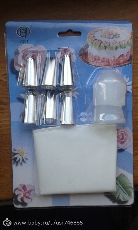 Далее вот такой вот замечательный кондитерский мешочек, с железными насадками. Теперь мои тортики будут не только вкусными, но и красивыми!