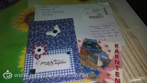 Замечательно! Я одну открытку тоже получила, правда из Москвы же. А про мои молчат.
