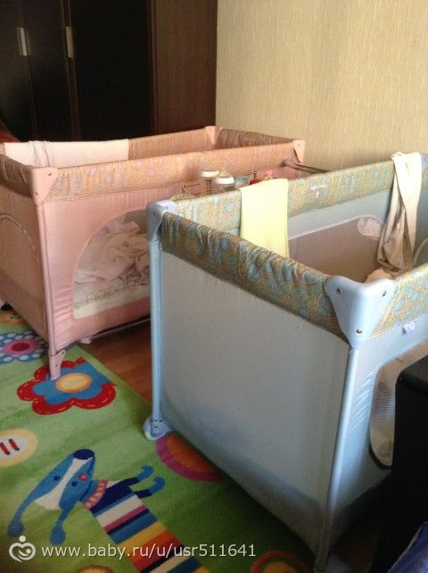 Сначала купила с маятником две одинаковые. Когда маленькие, нормально было, а потом побоялась что выпадут или раскачаются сильно, большие стали к году. Сейчас у меня две кровати-манежа, отличная штука, складывается, перевозится легко. Летом на даче, зимой дома. И к родственникам можно легко взять. Сейчас пожалела, что кровати покупала. Лучше бы сразу манежи, у них и сетка есть специальная для младенцев.