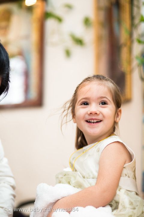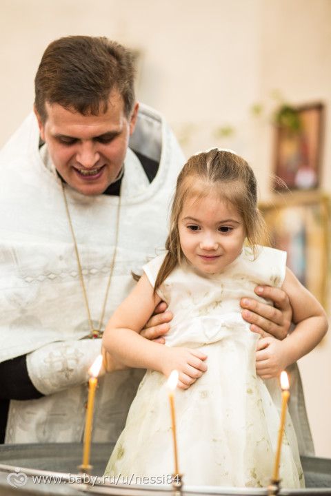 Во время крестин Полина вела себя очень спокойно. Я заранее ей много рассказывала, про то что будет происходить, но все равно она смотрела на все происходящее с широко открытыми глазами и с улыбкой!