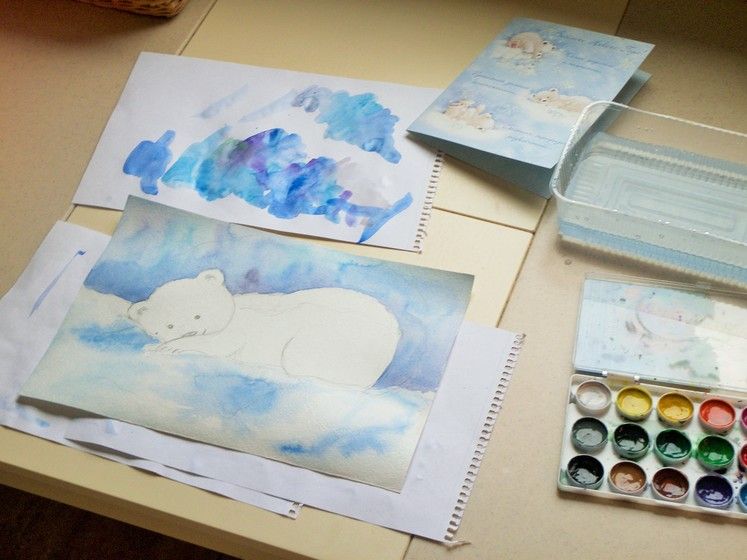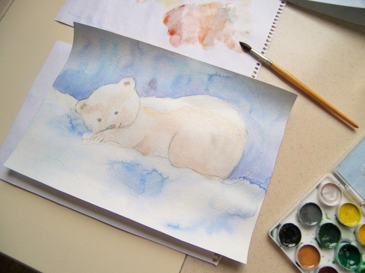 Я хотела сделать основу для аппликации из ваты. Но потом мне стало жалко отдавать акварель под аппликацию. Вот что в итоге получилось.