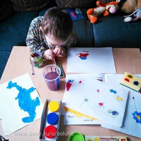 Я художник! — гордо уверенно сказал Василк…Может быть… Может быть…А пока учимся проводить линии, не давить на кисточку и не залезать грязной кисточкой в другой цвет))) ох, и трудно это… Нарисовали синего динозавра, ну а какой вы думали он цвета? )))Красного папу))) машины, вертолет и паровоз с вагоном… Ура))) Мы молодцы!!!