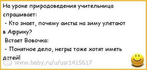 Про аиста и Вовочку... улыбнуло 11 марта 2016 21:25 Комментарии Пожалуйста, будьте вежливы и доброжелательны к другим мамам и соблюдайте правила сообщества ПожаловатьсяСкопировать ссылку Мааама Малая11 летМалышка9 лет Оулу правильно, темнокожих тоже нельзя обижать! ПожаловатьсяСкопировать ссылку Оля Питер Леонардо9 лет Санкт-Петербург ??? Предыдущая статьяХочу такого Чебурашку ))))Следующая статьяБудь разным :-)Актуальные постыкак здавать анализ кала на копрологиюкак лечить кашель у детей 1 годакак вывести пятно от компота