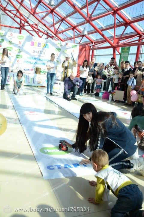 В соревновании будут принимать участие малыши с группой поддержки не более 2-х взрослых ( болеть за своих чемпионов может прийти сколько угодно людей – а вот непосредственно на дорожку с малышом смогут пройти не более двоих взрослых).