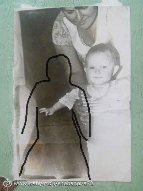 Та это пятнышки от проявки и старости!!! у меня куча фоток с такими пятнами!!! вы обвели даже не человека, а отдельно круглую голову как у колобка и туловище))у людей не такое сложение.короч фантазия ваша))