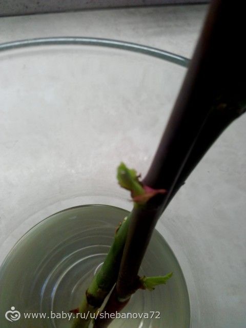 Девочки мне неделю назад подарили на работе розу. Крупная. Похоже голландская. Я ее поставила в воду и улетела к родителям. Вчера прилетели и тут такое чудо. Сам цветок засох. А стебель розы дал новые росточки. Жду когда появятся корни ))) хочу позже высадить её в землю во дворе. Интересно приживется?