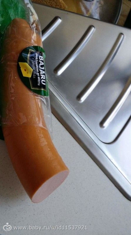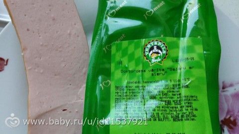 Купила на днях колбаску докторскую с сыром. Ну, знаете такую как с жиром но в место жира — сыр ) Девочки живущие в Прибалтике, не берите её! Вот она! Баярская.