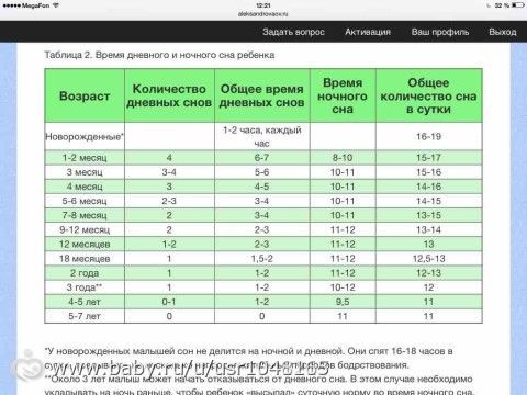 У нас три сна, в 11 и 19 по полчаса, дневной в 14 на 2 часа, отбой в 22. Но сейчас начался сбой