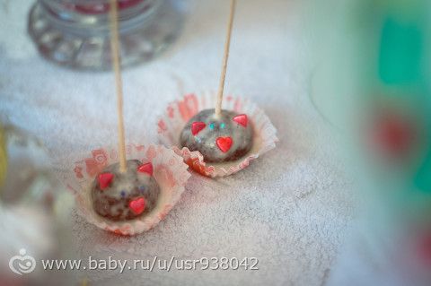 Торт с кошечкой заказывала в кондитерской. Кейкпопсы решила сделать сама, но не получились держаться на палочке,