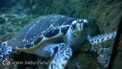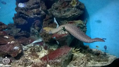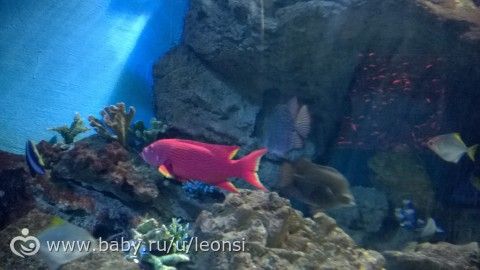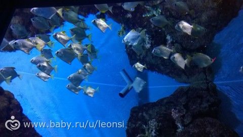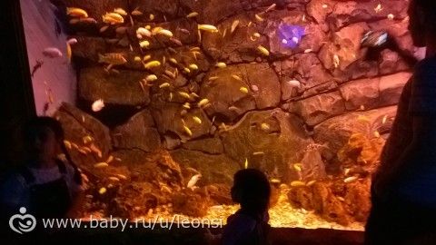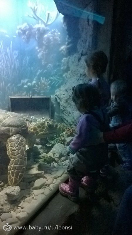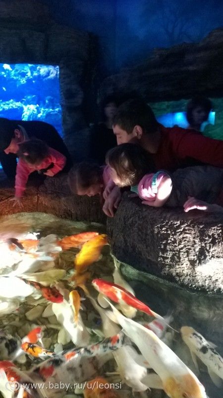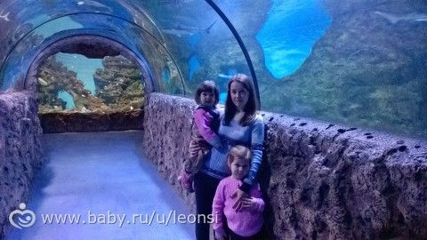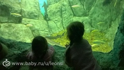 В начале там такие прикольные пингвины, мои девочки вперились в них и я не успела их сфотографировать. А вообще сам Океанариум поразил размерами рыб. Есть просто огромные! И много вообще очень больших рыб. В других Океанариумах я такого не видела (мы были на Чистых прудах и в Волгограде). И ещё мне понравилось, что удобно подходить к аквариумам, маленького ребёнка даже не нужно держать на руках, Лиза сама бегала и всё смотрела.