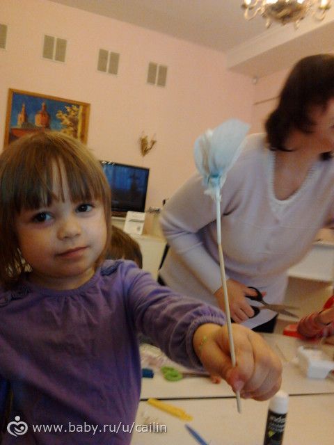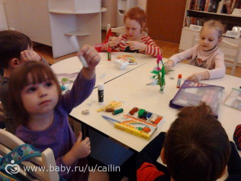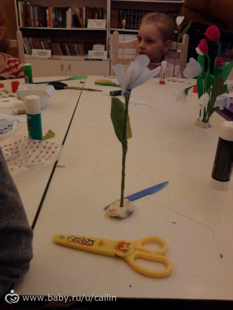 Во вторник пошли в кружок «Лицей для малышей». Там делают разные поделки. В этот раз делали подснежник. Детей было 7 человек. Сначала показали презентацию про весну, загадки отгадывали и т.д. Потом делали подснежник из креп-бумаги, палочек и др. Я немного помогала Ане. Педагог тоже помогала тем, кто с чем-то не мог справиться.