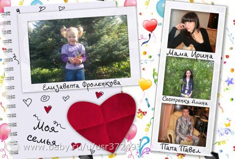 В садике дали задание, сделать семейную фотографию и поставить на шкафчик в раздевалке. Хотелось чего-нибудь интересного, но так как я в этом полный ноль, сделала ее моя старшая дочка Алина.