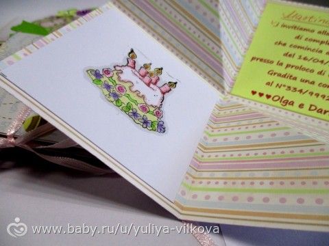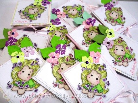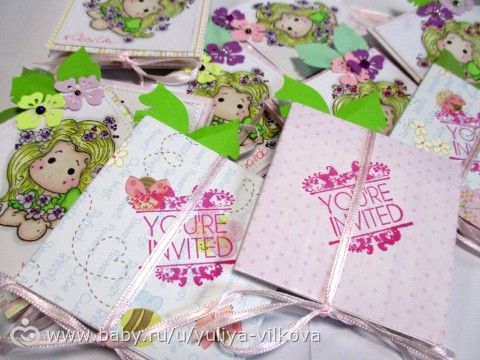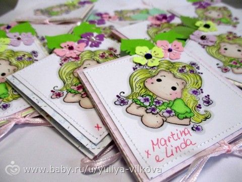Стараюсь я, девочки, хоть иногда творить и скрапить, где можно, а то на меня депрессняк нападает, и я, в свою очередь, нападаю на окружающих. Вот одна из идей сделать приглашалки на празднование дня рождения моих дочек (у них разница между ДР в 3 дня, поэтому праздник будет общий). Пока еще маленькие, мама оторвется. Напала на меня новая напасть: раскрашивать отпечатки Магнолии (марка такая шведская, делает таких миленьких девочек). Все 25 приглашений раскрашены вручную специальными маркерами. Приглашение раскрывается, внутри также раскрашенный тортик и текст самого приглашения где и когда. Сегодня разнесу все по приглашаемым. Составила уже меню, купила шарики и бумажные шары, аксессуары для фото и детский мейк-ап. Надо игры поискать и конкурсы. У вас есть какие идеи?