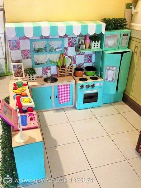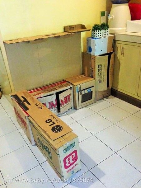 Мама умоляла друзей отдать ей картонные коробки… Зачем? — Чтобы сделать для дочки кухню! Смотри, какая клёвая)))