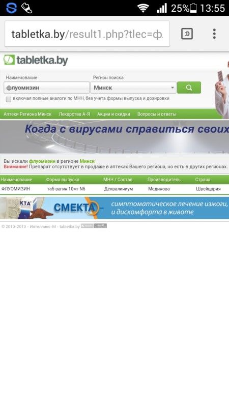 Флуомизин таб вагин 10мг N6 (Мединова, Швейцария)