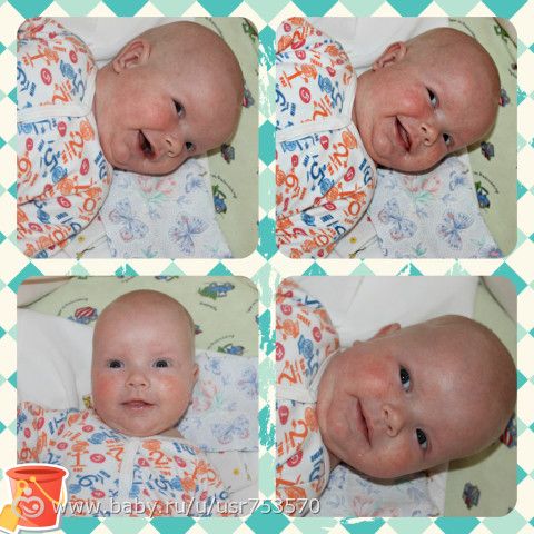 За этот месяц малыш начал чаще улыбаться, особенно папке и Дане, гукать гакать и гекать, держать хорошо голову, почти переворачивается на бочок.После курса эубиотика наладились дела какашечные, после вечно какающего Даньки Димкины 1 раз в 3 дня для меня были несколько… ужасны)))Да и пукает он… звонко и забористо.Сыпь на щёчках начала сходить.Жду не дождусь, когда же перестанет срыгивать в таких количествах.Иногда мне кажется, что срыгнул всё, что съел и моя молочная ферма работает вхолостую
