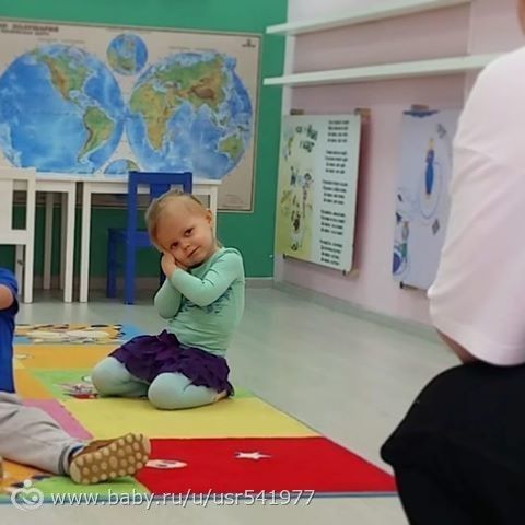 Между мальчиком и преподавателем и вообще вырезано из видео (хотела выложить видео, но там другие дети и я не могу их выложить без разрешения родителей), но такую милашку тут строит))Танцуют под детскую песенку 'Пугало', часть где всякие котята и лягушки легли спать.После таких танцев с действиями в Бэби-клубе Алиса вообще полюбила учить движения танцев, каких ни увидит