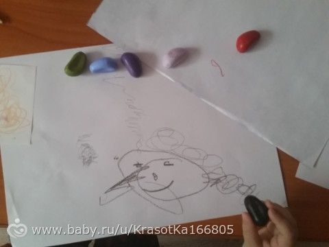 Мой стал рисовать акварельными мелками. Раньше ничем не нравилось. Разукрашку ему на плотных листах купила. Разукрашивает