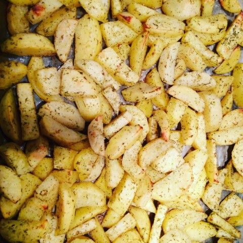 Можно, короче почистила картошку, порезала кусочками не толстыми и не тонкими примерно 1-1.5 толщиной, масло рост. Примерно 50мл смешала с приправой для картошки, солью, укропом и сухим чесноком, но тожно и обчный натереть на терке, сне не охото было с ним возиться, ну и вообще можно любые приправы, потом кариошку перемешиваешь в этом масле с приправами и на застеленный протвень, лучше и его смазать маслом, а то у меня чуть прилипло к бумаге, 30 минут га 180г остальное время на 210, готовность палочкой или ножом проверять