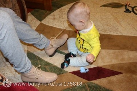 Вечером Ася вытянула разносить новые ботиночку. Никите они так понравились!
