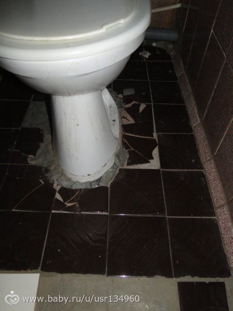 Унитаз пытались выдрать и он стоит набекрень