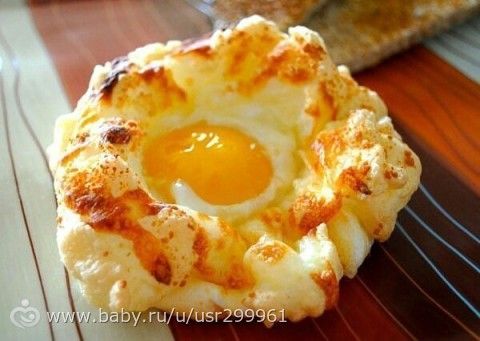 4. Разогрейте духовку до 230С. Застелите лист для выпечки пергаментной бумагой, фольгой или специальным силиконовым ковриком для выпечки. Выложите на противень взбитые белки с сыром в виде «гнезд».