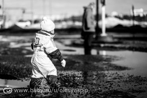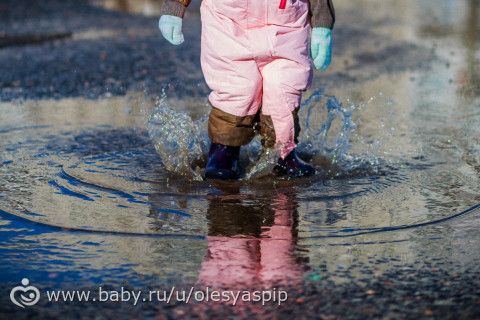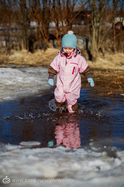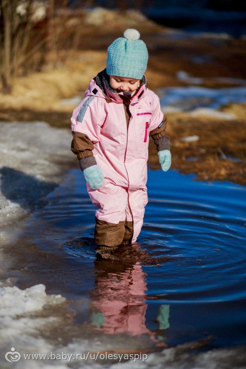 мы так же гуляем, хоть и нет непромокаемых комбезов. Еще и я с радостью рядом в лужу полезу, вместе скачем и кораблики запускаем. Когда еще, если не в детстве!!!